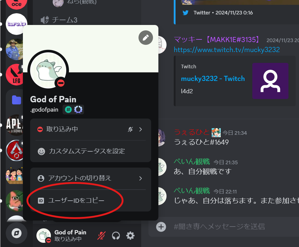 PCの場合はディスコードIDを暗記をせずとも「ユーザーIDをコピー」するを押してもらい、応募項目に張り付けてもらえれば幸いです。