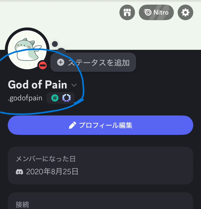 開いた後、画面に名前が表示されます。それがディスコードIDです